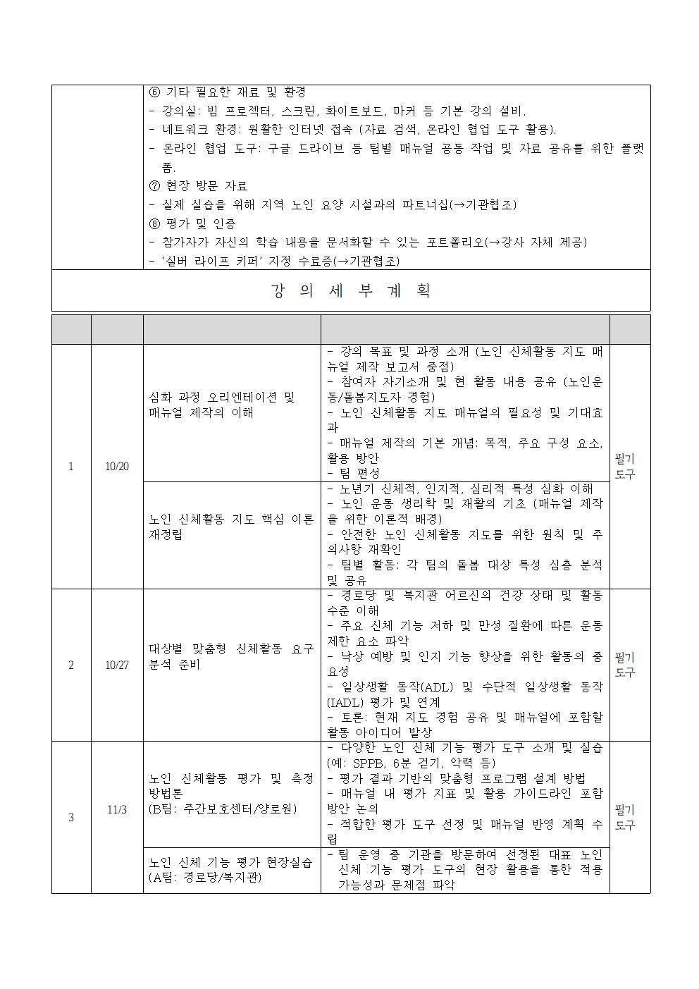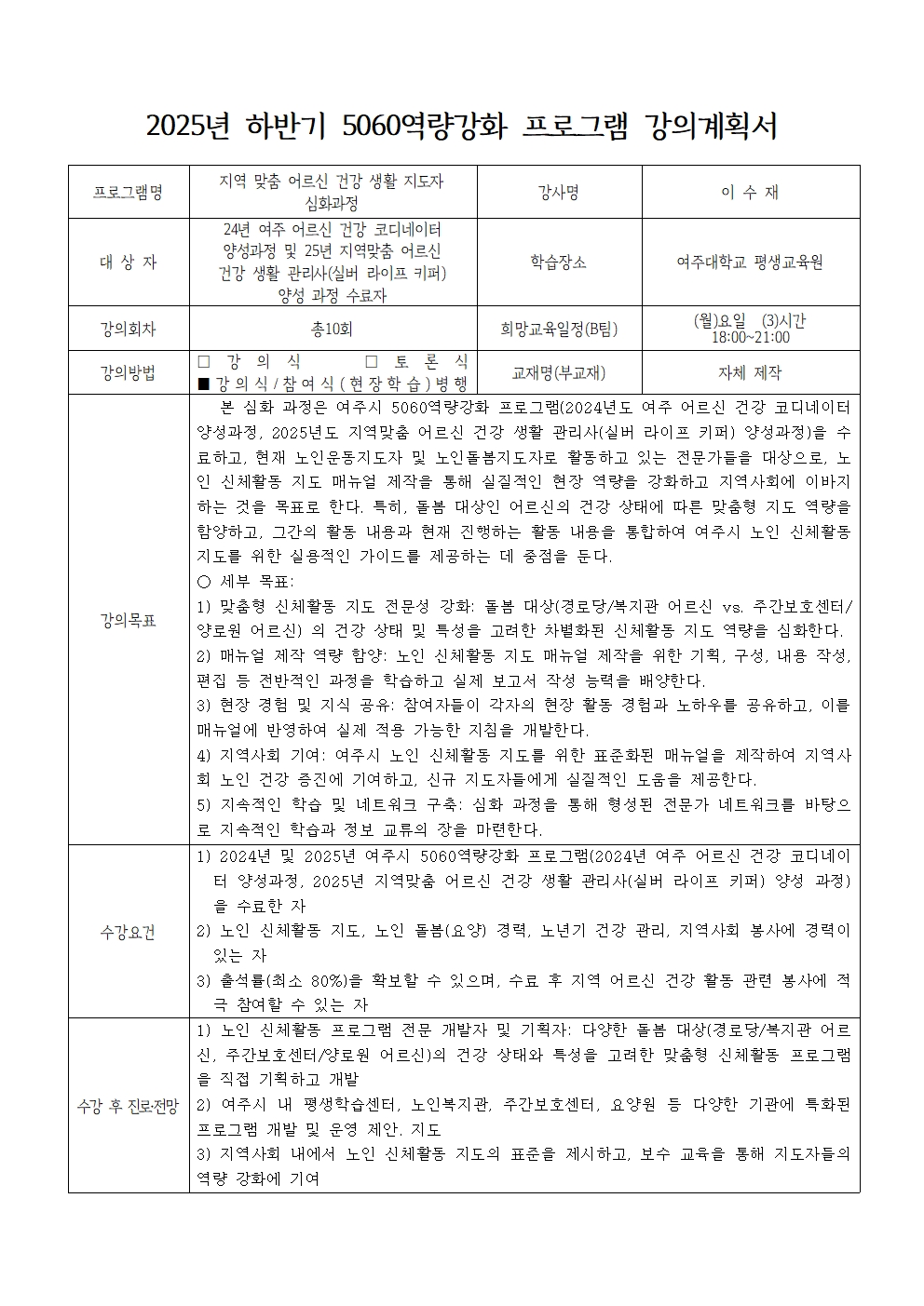 5060 역량강화 프로그램 2025년 5060 역량강화 프로그램 지역맞춤 어르신 건강생활 지도자 심화과정