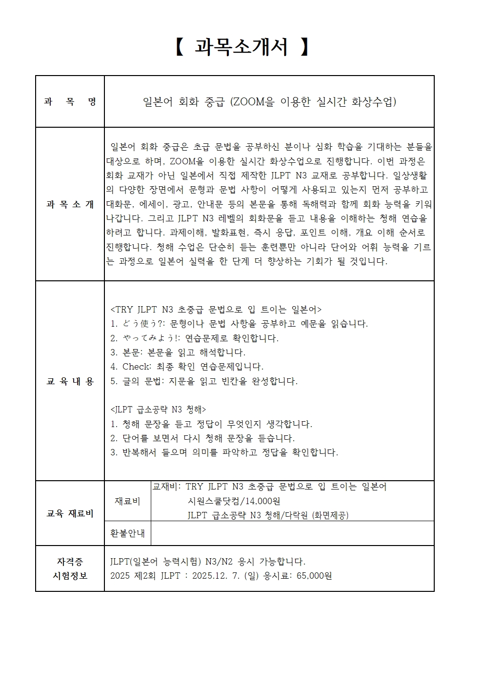 정규프로그램 2025년 하반기 정규프로그램 [비대면]일본어 회화 중급