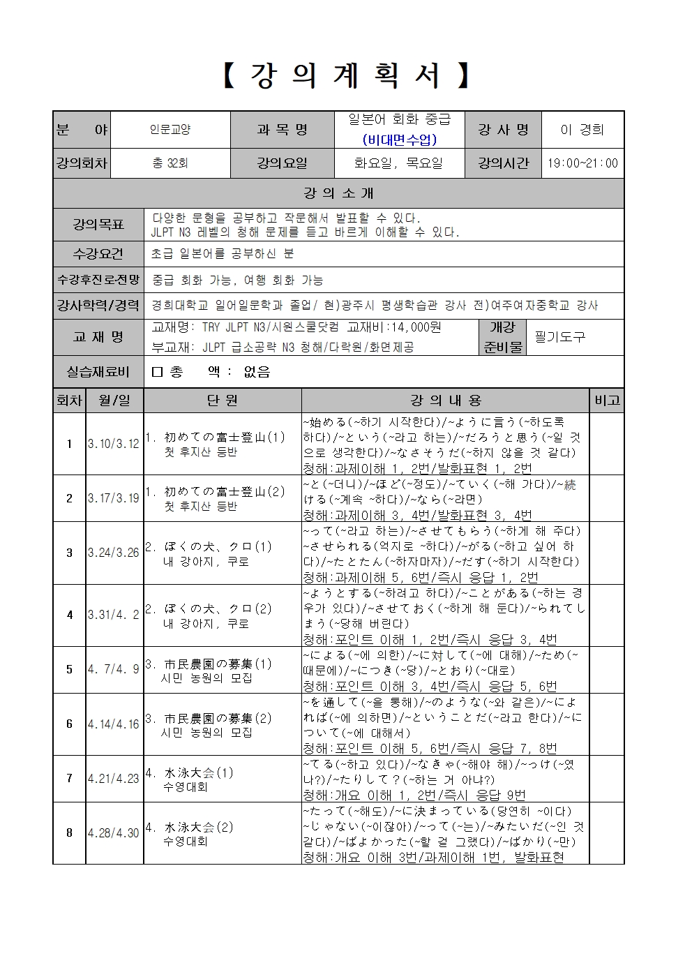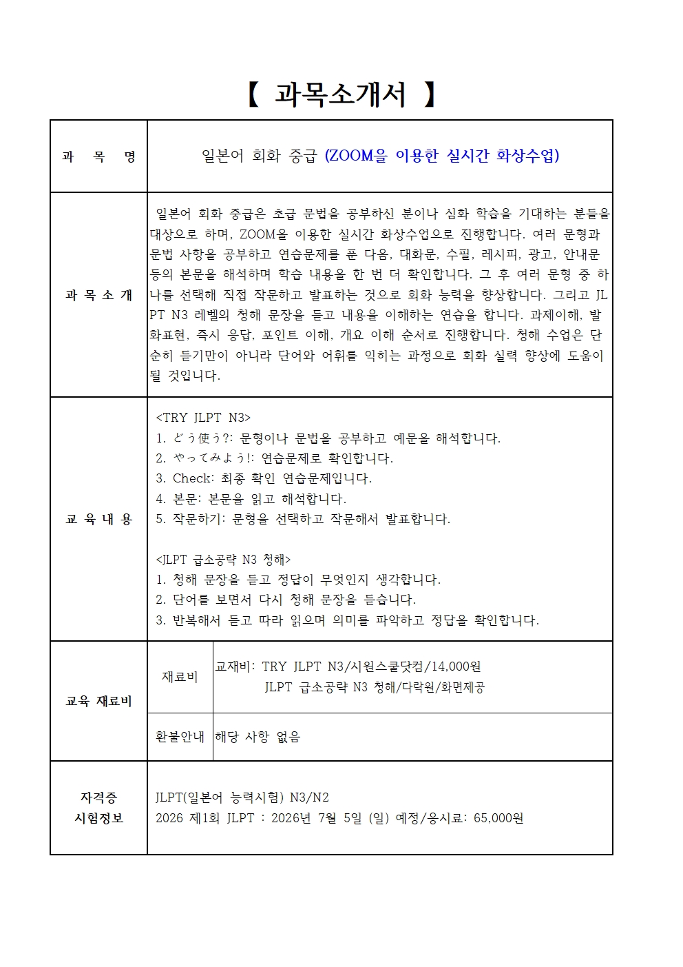 정규프로그램 2026년 상반기 정규프로그램 [비대면]일본어회화(중급)